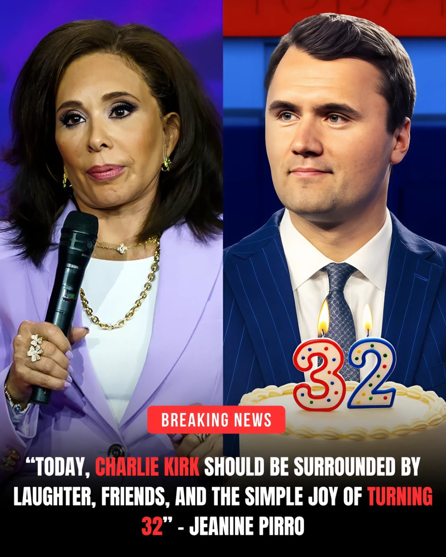 “HE SHOULD BE BLOWING OUT CANDLES, NOT BURIED IN SILENCE” — JEANINE PIRRO BREAKS DOWN ON LIVE TV HONORING CHARLIE KIRK ON WHAT WOULD HAVE BEEN HIS 32ND BIRTHDAY