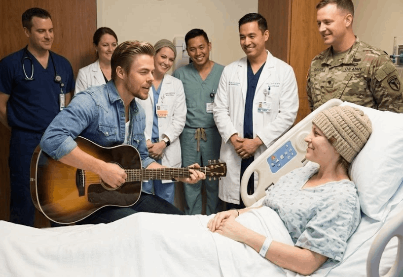 A compassionate hospital nurse, moved by the father’s devotion and the girl’s unwavering love for Derek Hough, shared the letter on social media. She didn’t expect anything to happen. She simply hoped someone — anyone — might help amplify the message.