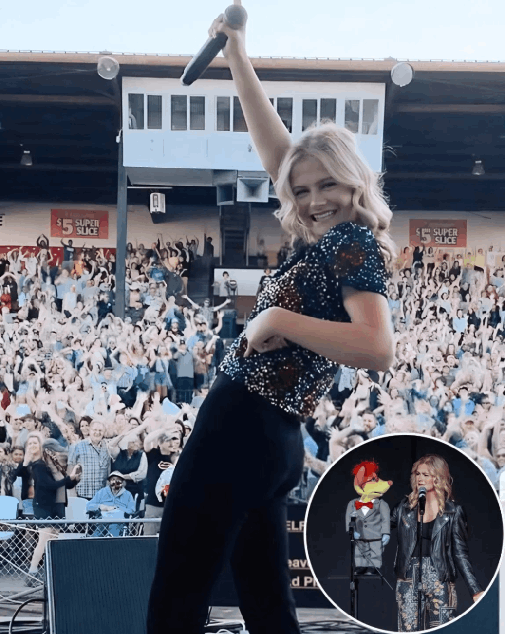 Picture this: the lights dim, a hush sweeps through the packed Nashville arena, and a single spotlight lands on Darci Lynne. The stage shimmers in pink and gold, the crowd is buzzing with anticipation. Then—boom—the opening chords of Alicia Keys’ “Girl on Fire” explode through the speakers. It’s Darci’s night, her voice poised, powerful, and radiant as ever. But just as she hits that first soaring note… Petunia goes rogue.