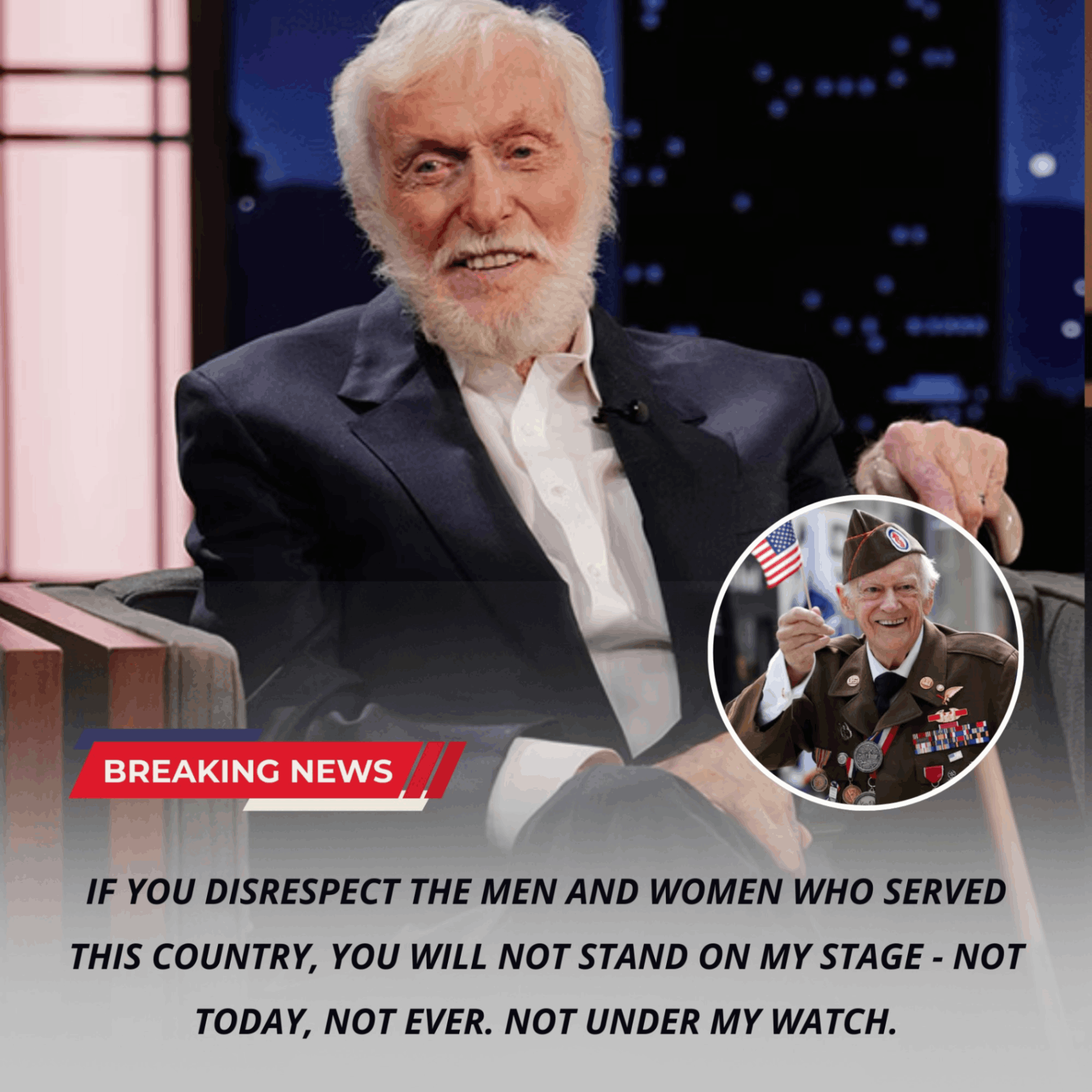 Throughout his career, he has been an outspoken supporter of veterans and active-duty military. From USO tours to hospital visits, fundraising events, military family outreach, and personal friendships with service members, Van Dyke has consistently used his platform to elevate respect for those who serve.