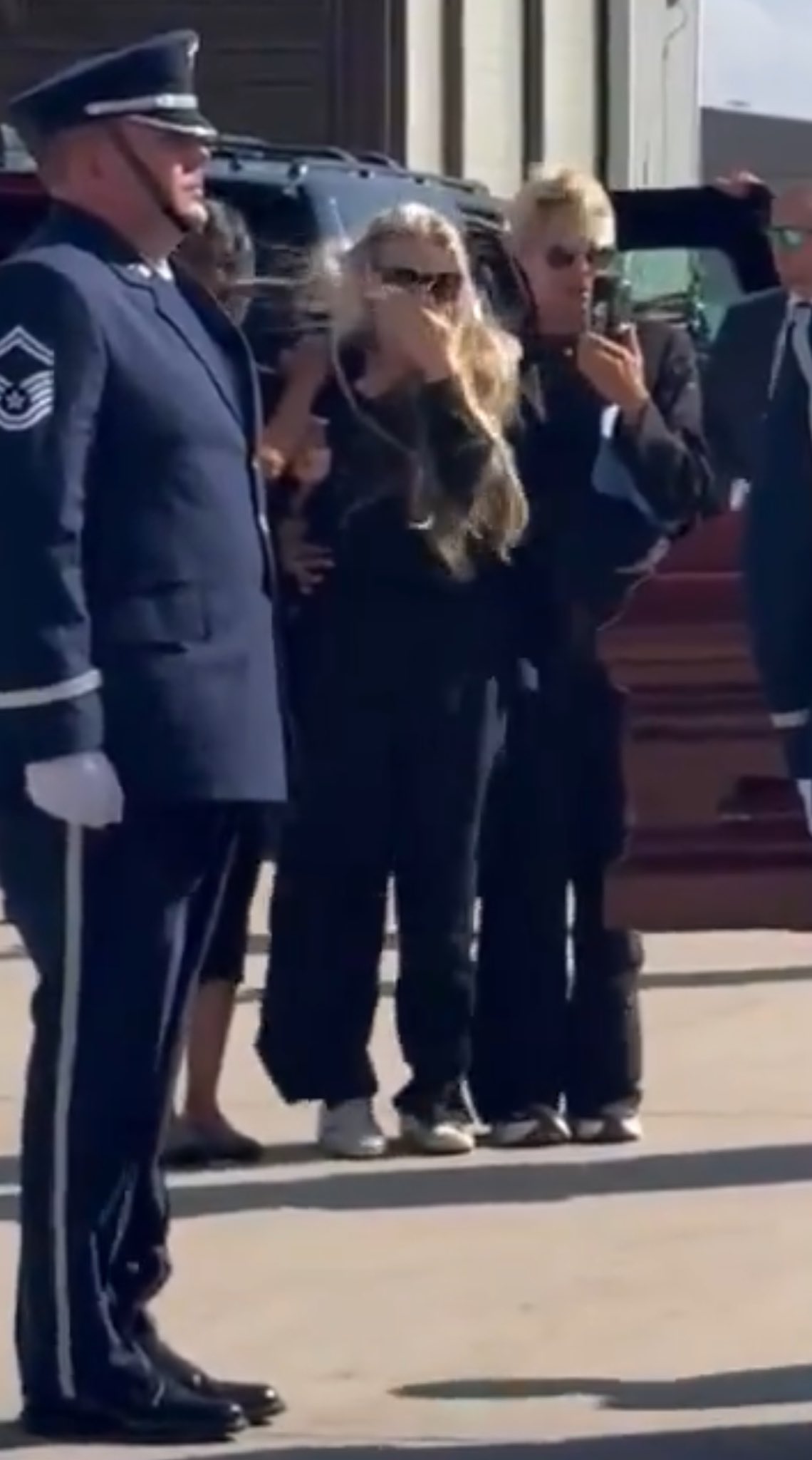 The image of Erika, dressed in black and shielding her eyes with sunglasses, descending the plane’s steps alongside Usha Vance was a gut-wrenching tableau of loss. Both women, united in sorrow, held hands tightly, their shared silence speaking volumes.