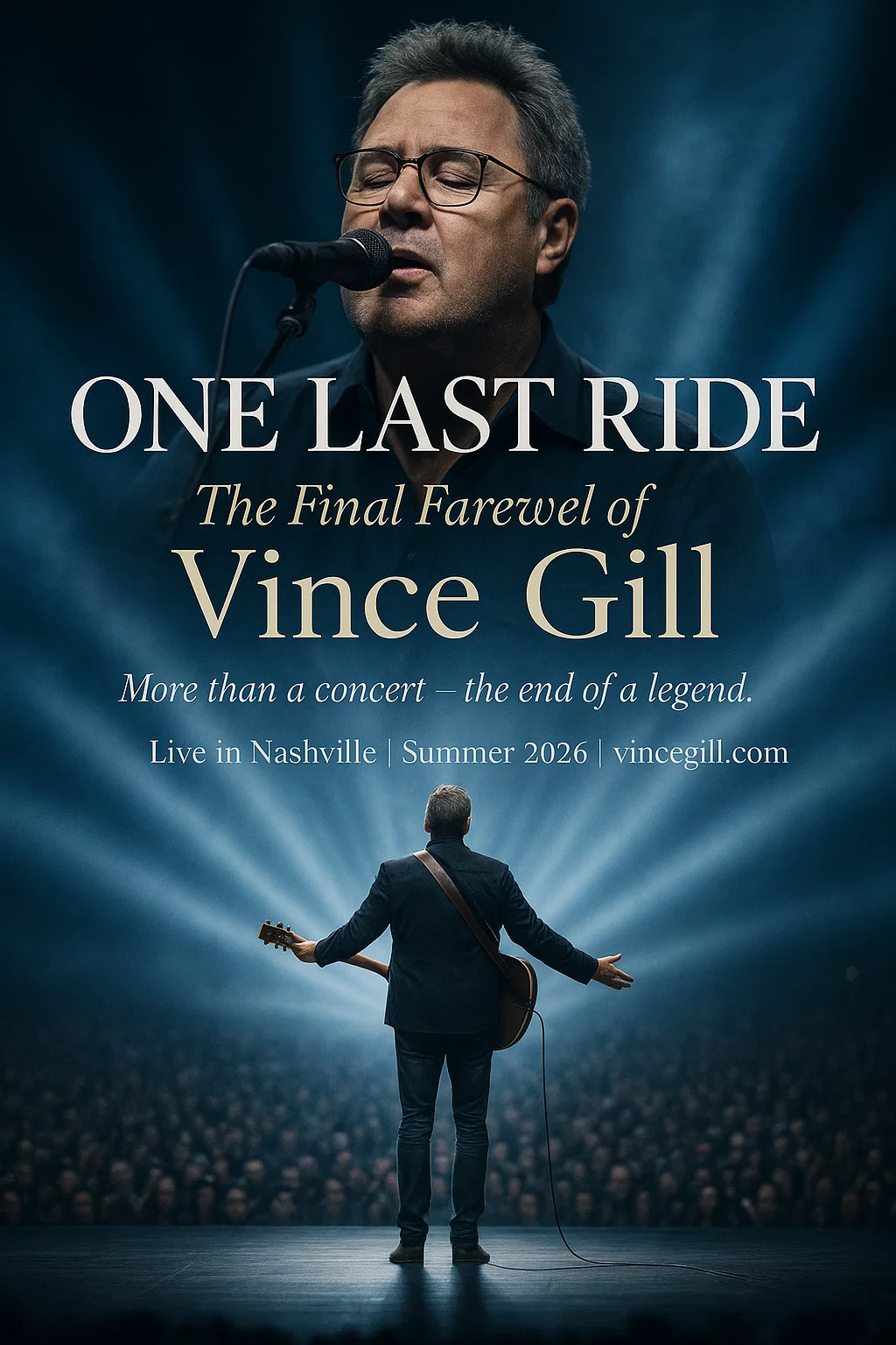 While “ONE LAST RIDE” may mark the end of Vince Gill’s touring days, it’s far from the end of his story. His music, his compassion, and his devotion to family and faith will continue to echo long after the curtain falls.