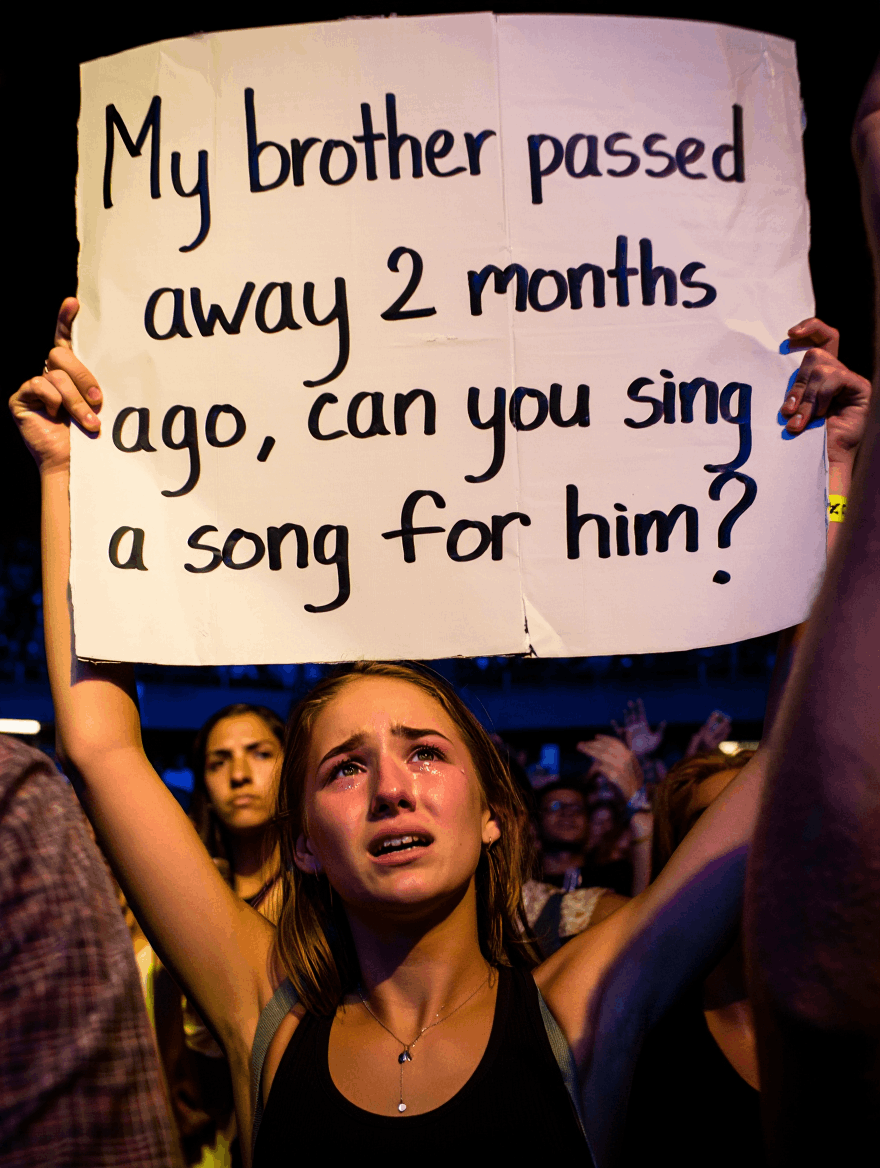 Moved by her message, Capaldi gently addressed the crowd: “Erin just handed me this letter — she lost her brother last year, and she said this song helped her through it. I can’t even imagine that kind of pain, but I want to dedicate this one to him tonight.”
