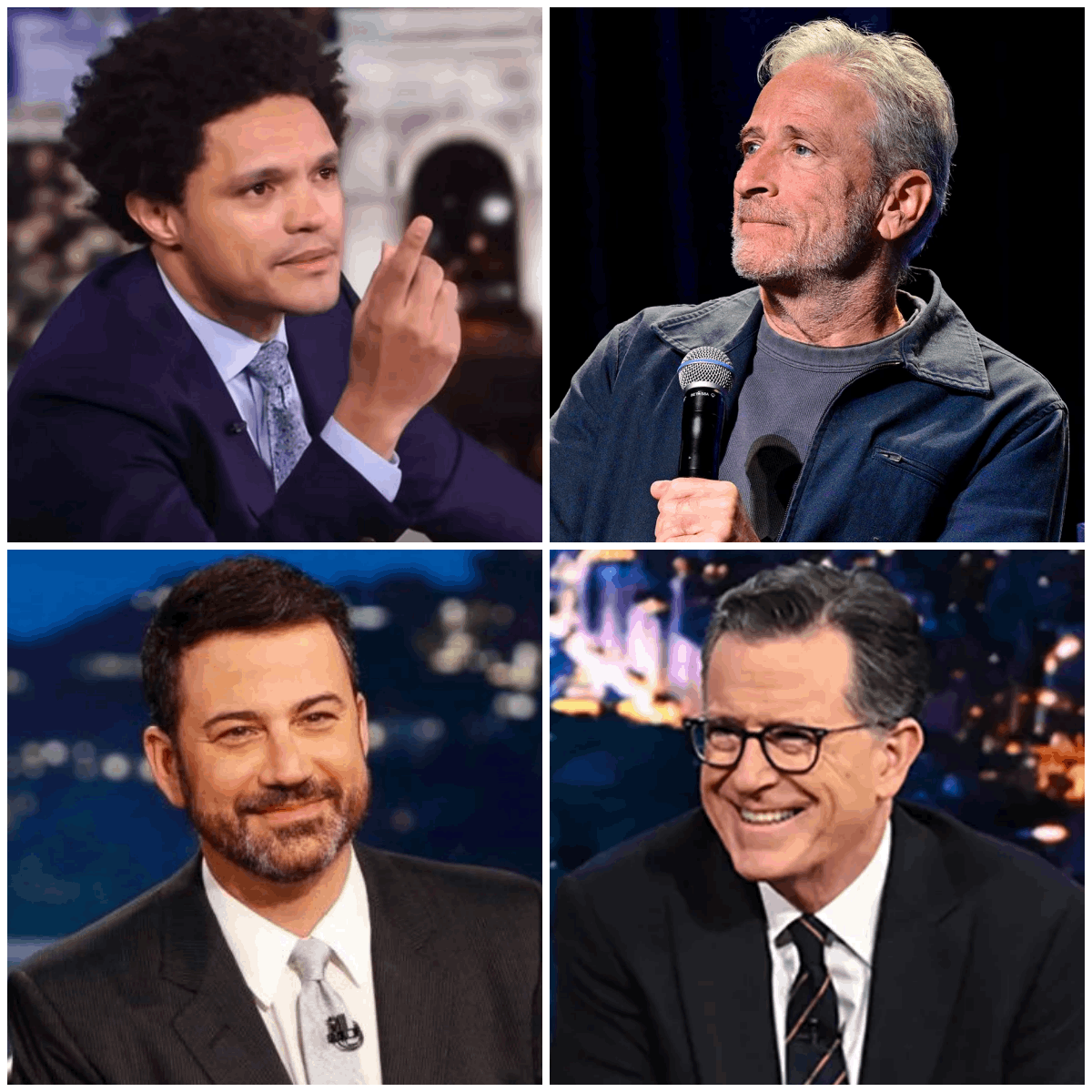 Because Stewart isnโt standing alone. Behind the curtain, heโs reportedly joined by Trevor Noah, Stephen Colbert, and Kimmel himself โ a covert coalition of truth-tellers forming what one insider described as โthe newsroom Hollywood doesnโt want you to see.โ