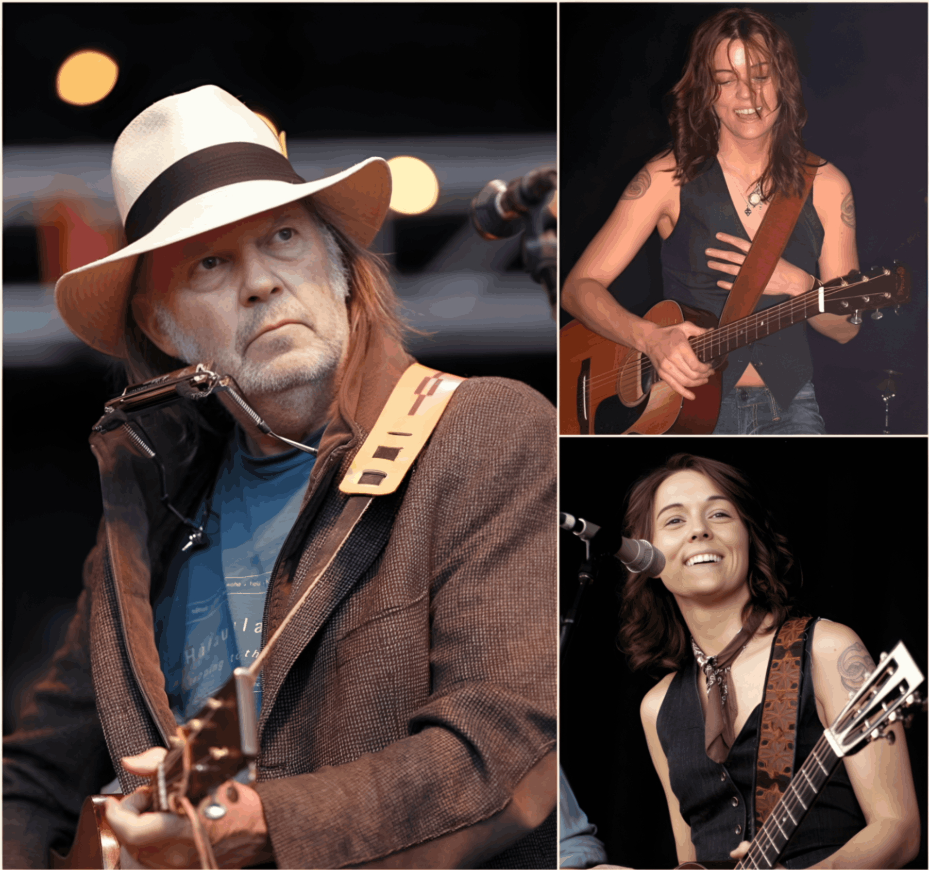 In a moment that felt almost surreal, Neil Young, the iconic singer-songwriter whose career has spanned over five decades, stepped onto a dimly lit stage with Brandi Carlile, one of the most powerful and emotionally resonant voices of the modern era. What followed was a performance that will surely be remembered as one of the most extraordinary musical collaborations in recent memory.