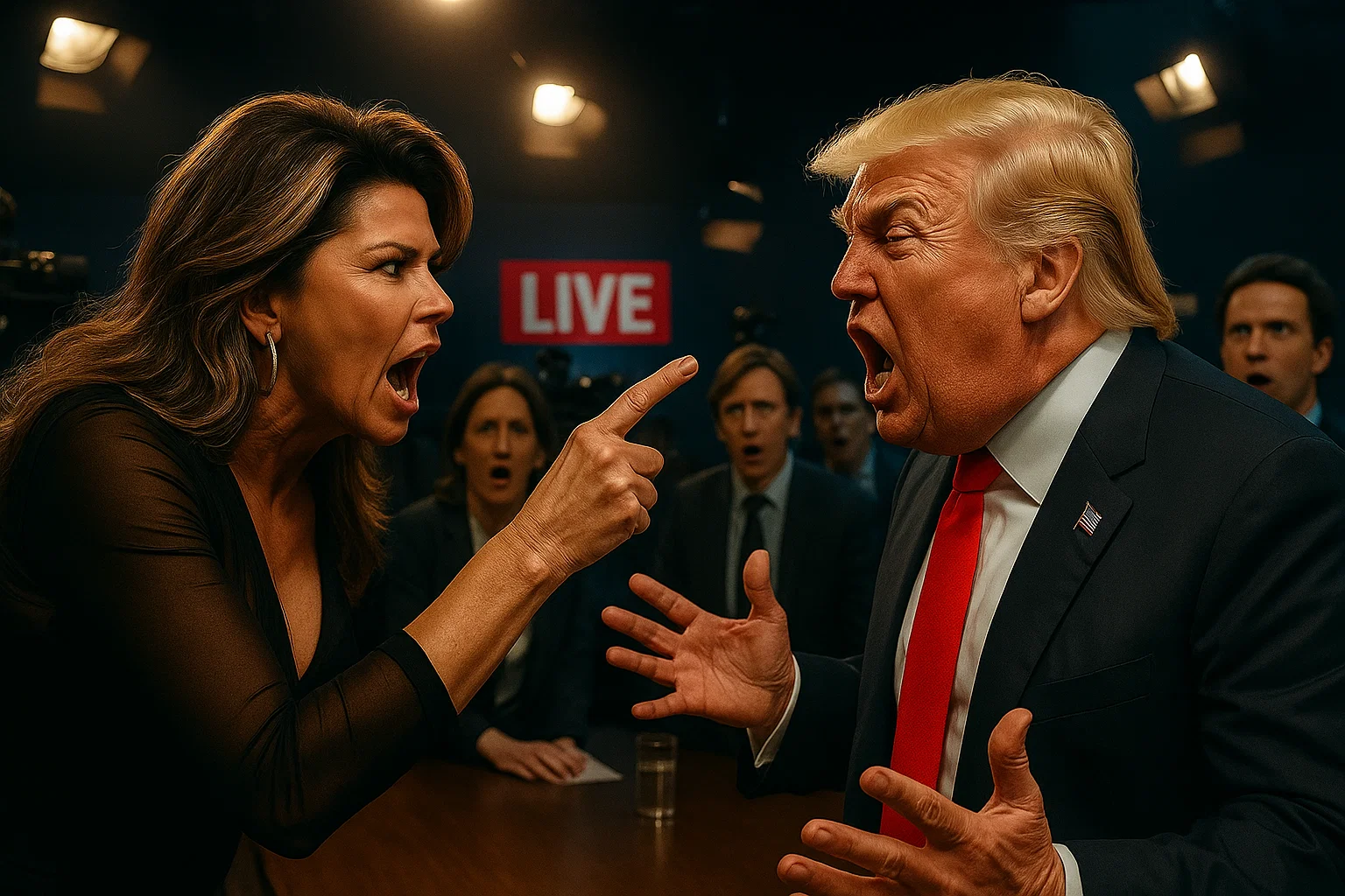 With that, she turned on her heel and walked out, leaving the room buzzing like an electric storm. The press corps was left in stunned silence, aides whispered hurriedly among themselves, and cameras continued rolling, capturing every second of the aftermath. Within minutes, social media erupted. Clips of the confrontation were shared millions of times across Twitter, Instagram, TikTok, and YouTube. Hashtags such as #ShaniaVsTrump, #LiveTVExplosion, and #TruthOverSpin trended globally.