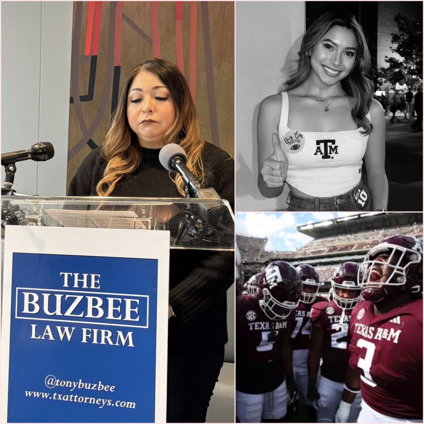 The press conference, held at a Houston legal center packed with reporters, cameras, and supporters wearing pins bearing Briannaโs name, marked the familyโs first major public appearance since announcing their intent to pursue legal action. While the investigation remains ongoing, and no official conclusions have been reached, the familyโs remarks have already thrust Texas A&M into the center of an intensifying storm of public scrutiny.