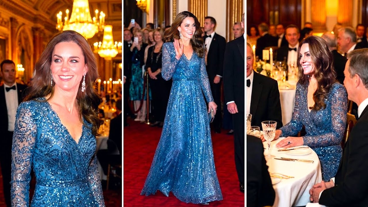 The Princess of Wales brought old-school Hollywood glamour to the British Ambassador’s residence last night, floating into the annual diplomatic gala in a breathtaking ice-blue Jenny Packham gown that instantly became the most talked-about royal look of the season.